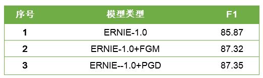 对抗训练是指在模型的训练过程中构建对抗样本,参与模型训练的方法。正常训练过程中,如果梯度方向陡峭,那么很小的扰动都会产生很大的影响。为了防止这种扰动,对抗训练在模型训练的过程中使用带扰动的对抗样本进行攻击,从而提升模型的鲁棒性。可以看到FGM和PGD两种生成对抗样本的方式效果提升都比较明显。