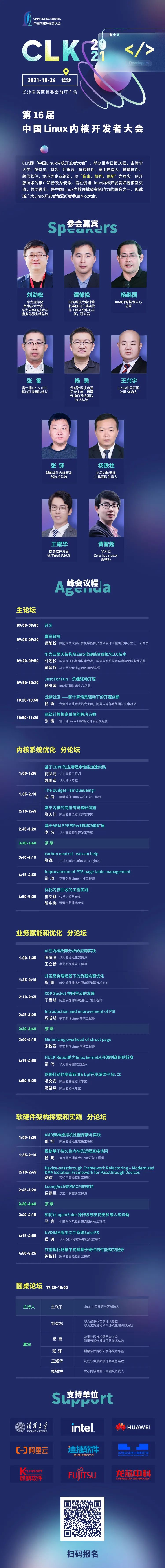 10 月 24 日,第十六届中国内核开发者大会将在这个微凉的初秋与大家在湖南长沙相聚。CLK 大会由清华大学、Intel、华为、阿里云、富士通南大、迪捷软件、麒麟软件、统信软件、龙芯共同举办。感谢各企业单位对本次峰会的大力支持与赞助。