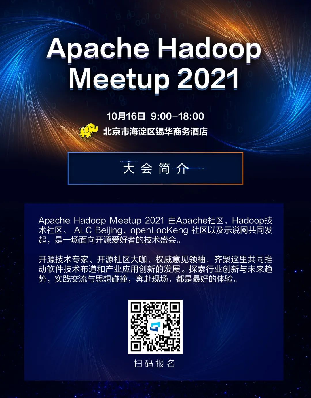 10月16日,Apache Hadoop Meetup 2021,期待您的到来!