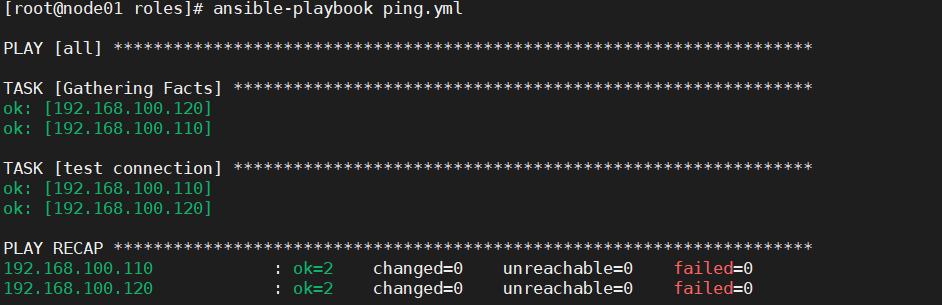 我们先写个简单的剧本,功能是对主机清单上申明的所有受控端进行网络连通性测试。