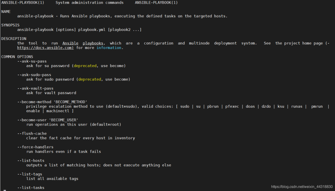 查看ansible-playbook的使用方法