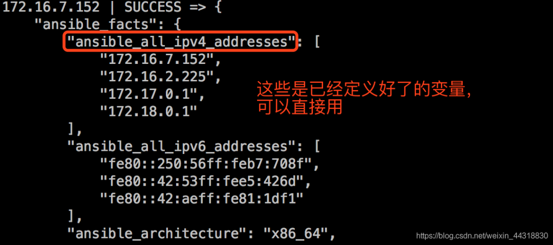 【注意】:playbook中能使用的变量不仅仅是这里定义的变量,而且可以使用ansible中定义的所有变量。例如: