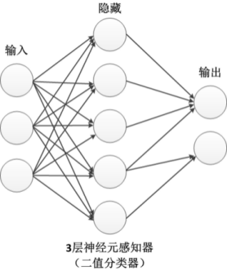 相对于单层感知器,MLP多层感知器输出端从一个变到了多个;输入端和输出端之间也不光只有一层,现在有两层:输出层和隐藏层,如图1-1所示。