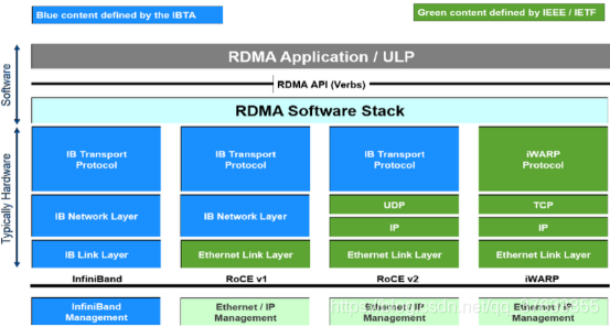 作为RDMA迁移到传统以太网上衍生出来的两种技术——RoCE和iWARP,一个是基于无连接协议UDP,一个是基于面向连接的协议(如TCP)。