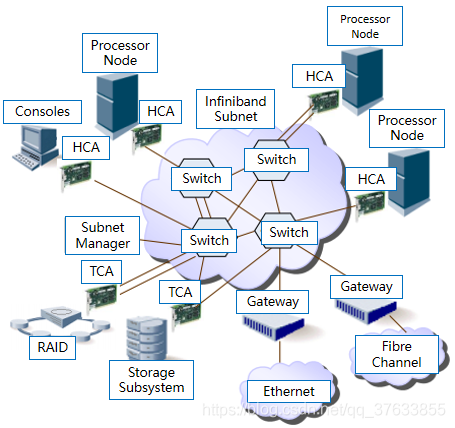 2.Target Channel Adapters (TCA):HCA的子集,基本上用于存储平面数据交互;