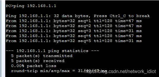 由于从VLAN之间无法互通,所以ping PC4是通不了了。那我们再来尝试隔离型VLAN内进行PING 测试,PC4ping PC5: