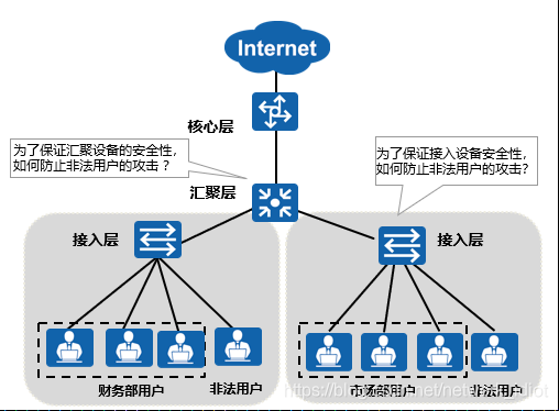 应用在接入层设备,通过配置端口安全可以防止仿冒用户从其他端口攻击。