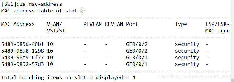 我们再来看下LSW1,汇聚层设备的MAC地址表: