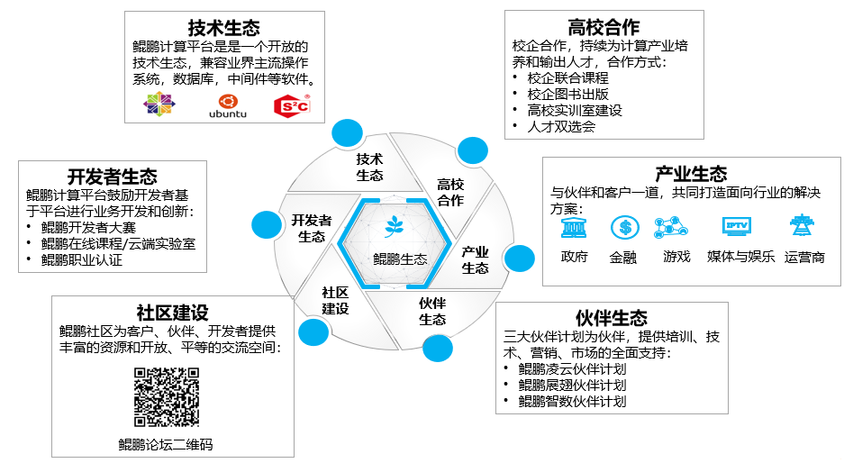 鲲鹏计算产业目标是建立完善的开发者和产业人才体系,通过产业联盟、开源社区、OpenLab、行业标准组织一起完善产业链,打通行业全栈,使鲲鹏生态成为开发者和用户的首选。