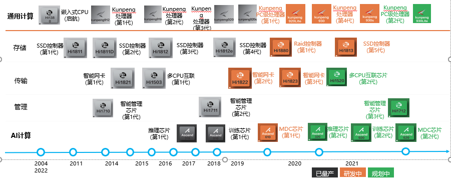 华为鲲鹏处理器是华为自主研发的基于ARM架构的企业级系列处理器产品,包含“算、存、传、管、智”五个产品系统体系。