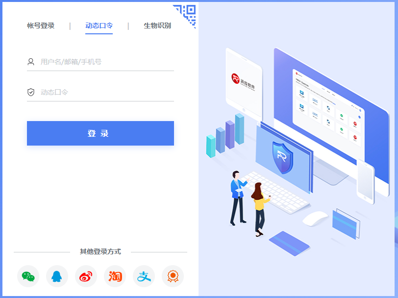 使用动态口令替代密码,用户在登录认证时,只需要用户名+动态口令,即可完成认证,用户登录时,一次一密,用户使用便捷,安全性也能得到提高。