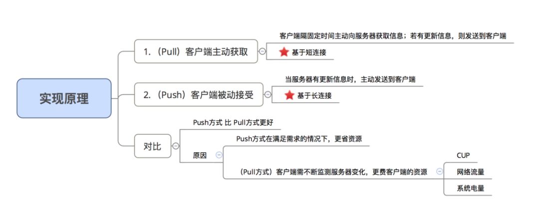 实现原理:基于Push方式,当服务器有新消息时,发送1条类似短信的信令给客户端,客户端通过拦截信令,解析消息内容/向服务器获取信息;