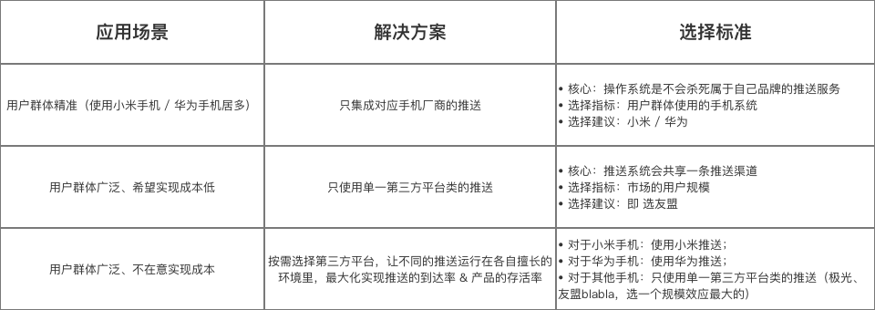 我们来分别看一下第三方推送选择的标准:
