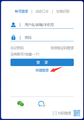 1、用户在 PC 端登录页面,点击 “一键快捷登录” 按钮,触发手机一键登录;