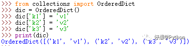 另外值得一提的是,Python 3中自带OrderedDict(有序字典)类,可以通过“from collections import OrderedDict”来导入使用。它的用法跟普通的dict并没有什么区别,但它的特性是,能记住放入字典的键值对的顺序,在输出字典内容的时候可以把顺序输出出来。