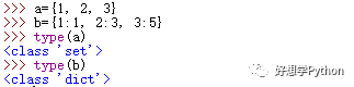所以在Python中,初始化set的形式,可以是set(),也可以是跟dict类似地使用“{}”花括弧符号。需要千万留意!由于“{}”可以用于初始化set也可以用于初始化dict,唯一区别它究竟是初始化哪一种的方式,就在于上一段所说的,有没有体现“键值对”的关系。