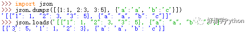 Python自带的json模块使用起来很简单,通过“import json”导入该模块就可以直接使用了。下面是一个简单的实例,通过dumps()、loads()实现Python基本数据结构(list、dict、int、str等)与JSON结构的字符串之间的互转。