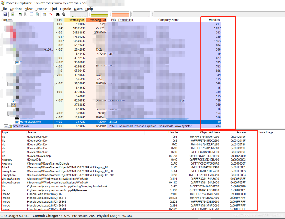 Process Explorer定位句柄泄露