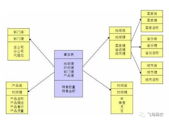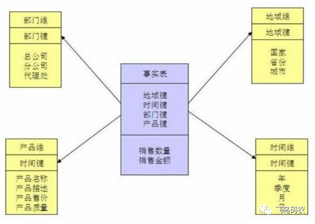 c.以事实表为核心,维表围绕核心呈星型分布;