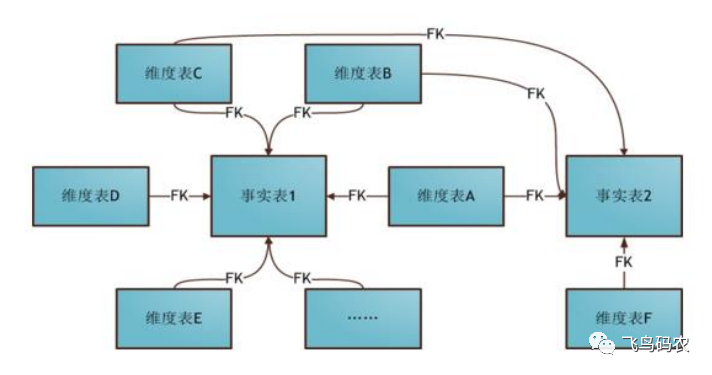 星座模式是星型模式延伸而来,星型模式是基于一张事实表的,而星座模式是基于多张事实表的,而且共享维度信息. 前面介绍的两种维度建模方法都是多维表对应单事实表,但在很多时候维度空间内的事实表不止一个,而一个维表也可能被多个事实表用到.在业务发展后期,绝大部分维度建模都是采用星座模型.