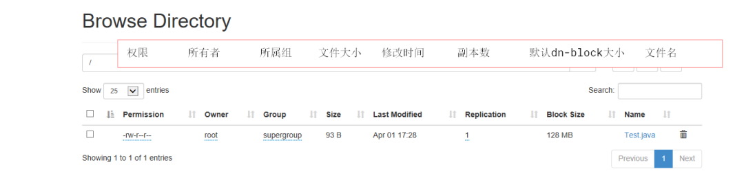hdfs文档路径查看文件内容,可以查看压缩文件内的文档信息 hdfs dfs -text /baizhi/Test.java hdfs dfs -cat hdfs文档路径 查看文件内容 hdfs dfs -cat /baizhi/Test.java hdfs dfs -rm hdfs文件路径 删除文件 hdfs dfs -rm /baizhi/Test.java hdfs dfs -rm -r hdfs文件夹 删除文件夹,非空使用-rmr hdfs dfs -rm -r /baizhi hdfs dfs -get