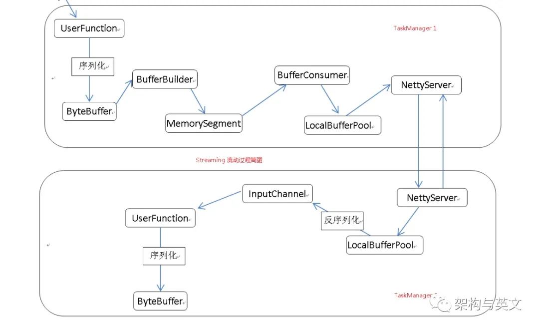 流数据如何在Flink 不同的TaskManager之间流动?这是任何一位想深入研究Flink内核的伙伴都绕不过去的逻辑,之前写过一篇文章《流数据如何在Flink新线程模型上流动》,主要通过Demo调式研究了Flink在local模式下的数据流动过程,其完全是在同一个TaskManager内,Inputchannel使用的都是LocalInputchannel,这次好奇下RemoteInputChannel和ResultPartition吧。消费者生产者模型应该都听说过,让我们一起分析BufferBuilder和BufferConsumer组合是如何完美的应用到Flink上,从而达到数据处理线程和发送线程的解耦。经过大量源码研究,笔者终于理清了实现逻辑,本文试图用一个最简单的图去描述它,如下图其流程逻辑清晰明了,建议读者结合源码去看加深印象。
