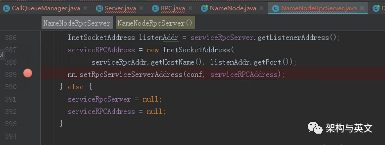 知道了成员变量的类型,那么我们继续查找NameNodeRpcServer,跳到其构造函数中,