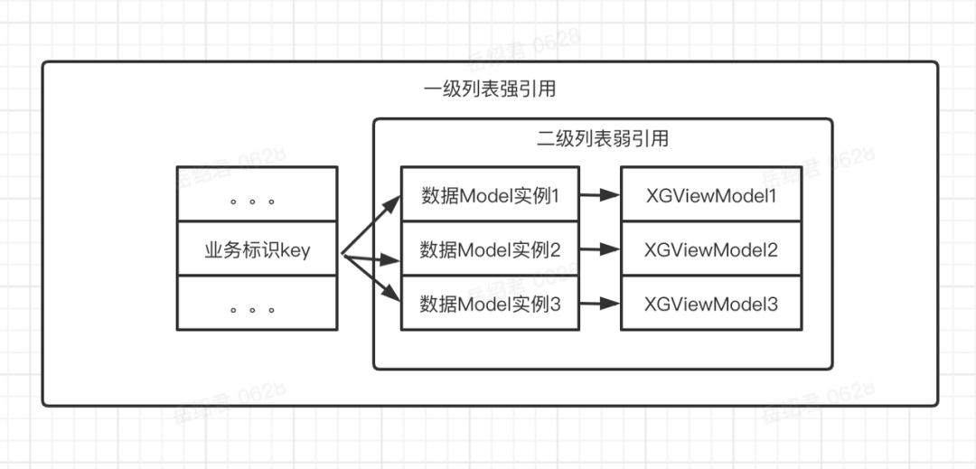 XGViewModel维护了通知给UI的弱引用回调合集。一个数据Model实例对应了一个XGViewModel。