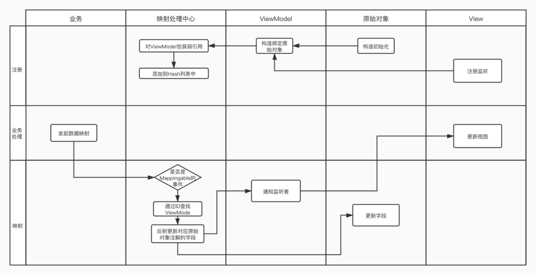 所谓数据更新UI,就是View-Model;数据映射数据,就是Data-Mapping,于是这个方案的名称就是VM-Mapping。