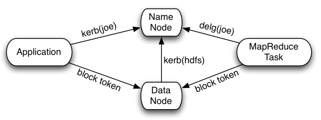 其中认证问题利用Kerberos可以很好地解决,通过HADOOP-4487引入Kerberos并结合内部设计的Token机制完美解决Hadoop安全认证问题,同时在性能上得到很好地保证,图1为Hadoop安全认证体系概要图示。关于Hadoop Security特性的细节参考HADOOP-4487,这里不再展开。