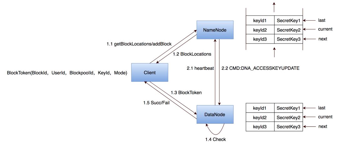 (2)在DataNode的心跳中增加当前SecretKey的版本号,NameNode端如果发现与本地SecretKey版本号不匹配通过心跳返回最新SecretKey集合;