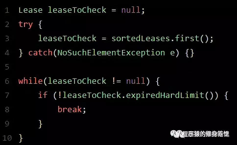 每次检查契约是否过期的时候,不要遍历成千上万的契约,那样遍历效率当然会很低下。完全可以就从TreeSet中获取续约时间最老的那个契约,假如说连最近一次续约时间最老的那个契约都还没过期,那么就不用继续检查了!这说明续约时间更近的那些契约绝对不会过期!