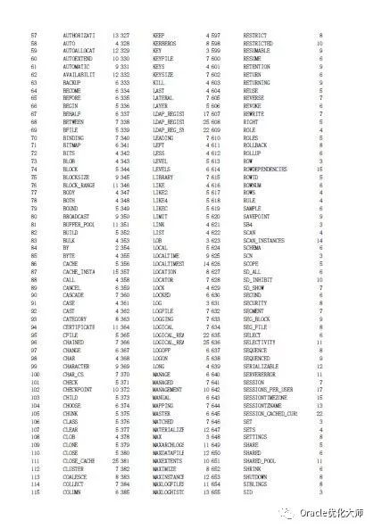 (获取自己数据库关键字:SELECT * FROM v$reserved_words)