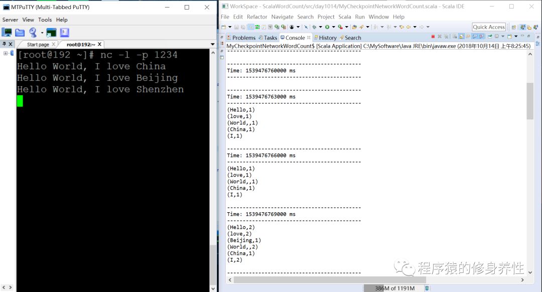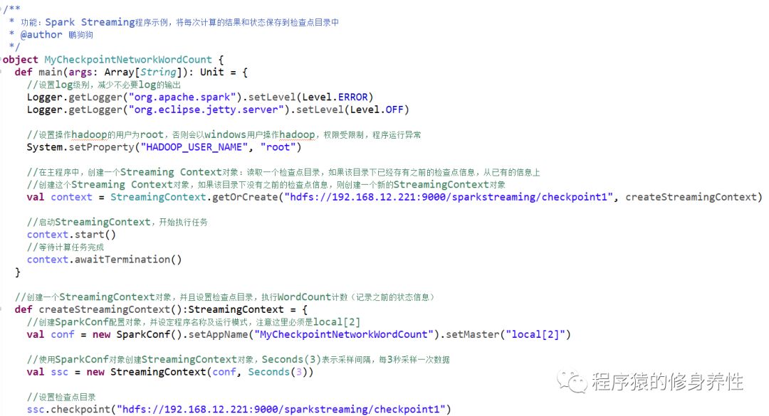 重写前文的MyNetworkWordCount程序,将每次计算的结果和状态保存到检查点目录中