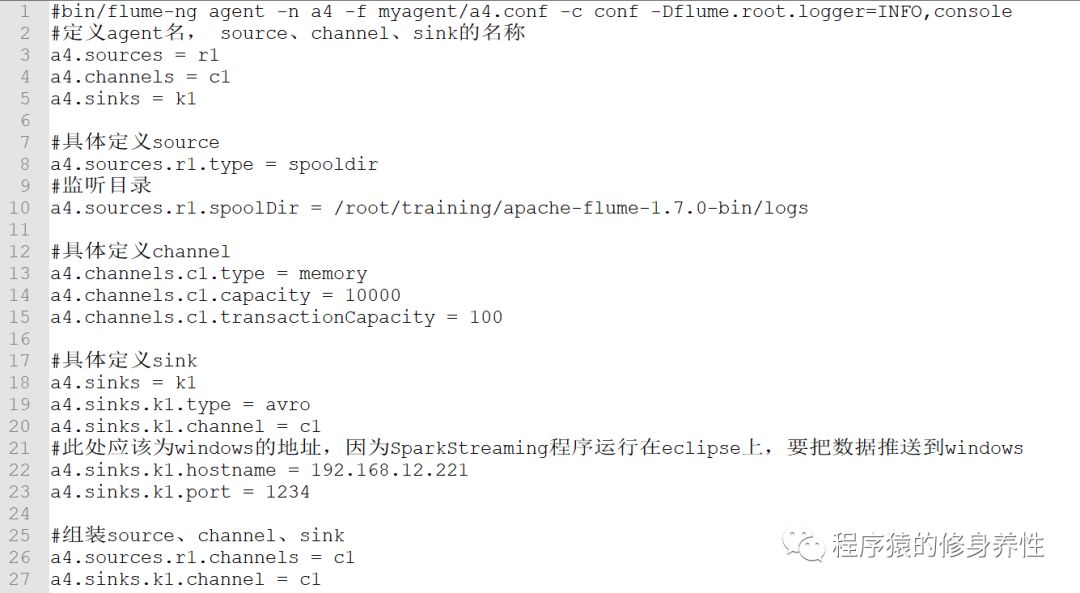 a1.conf配置文件中的代码如下图所示: