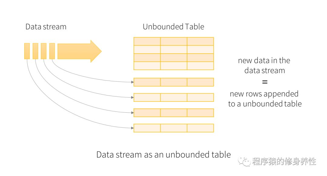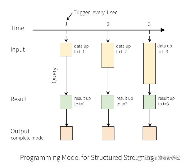 Spark Structured Streaming的核心是将流式数据看成一张不断增加的数据库表,这种流式的数据处理模型类似于数据块处理模型,可以把静态数据库表的一些查询操作应用在流式计算中,Spark运行这些标准的SQL查询,从不断增加的无边界表中获取数据。