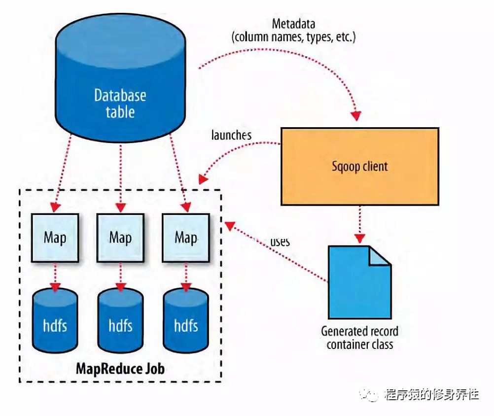 下图是Sqoop从数据库中导入表数据到HDFS的原理图: