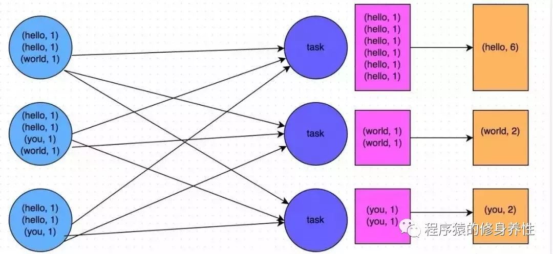 因此,一个stage刚开始执行的时候,它的每个task可能都会从上一个stage的task所在的节点,去通过网络传输拉取需要自己处理的所有key,然后对拉取到的所有相同的key使用编写的算子函数执行聚合操作(比如reduceByKey()算子接收的函数),这个过程就是shuffle。当在代码中执行了cache/persist等持久化操作时,根据选择的持久化级别的不同,每个task计算出来的数据也会保存到Executor进程的内存或者所在节点的磁盘文件中。