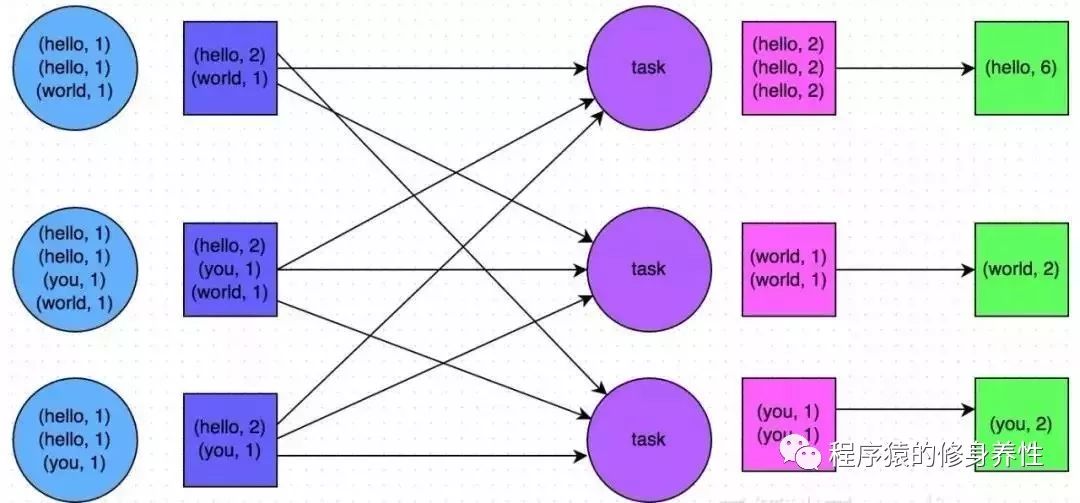 task是最小的计算单元,负责执行一模一样的计算逻辑(也就是编写的某个代码片段),只是每个task处理的数据不同而已。一个stage的所有task都执行完毕之后,会在各个节点本地的磁盘文件中写入中间计算结果,然后Driver就会调度运行下一个stage。下一个stage的task的输入数据就是上一个stage输出的中间结果。
