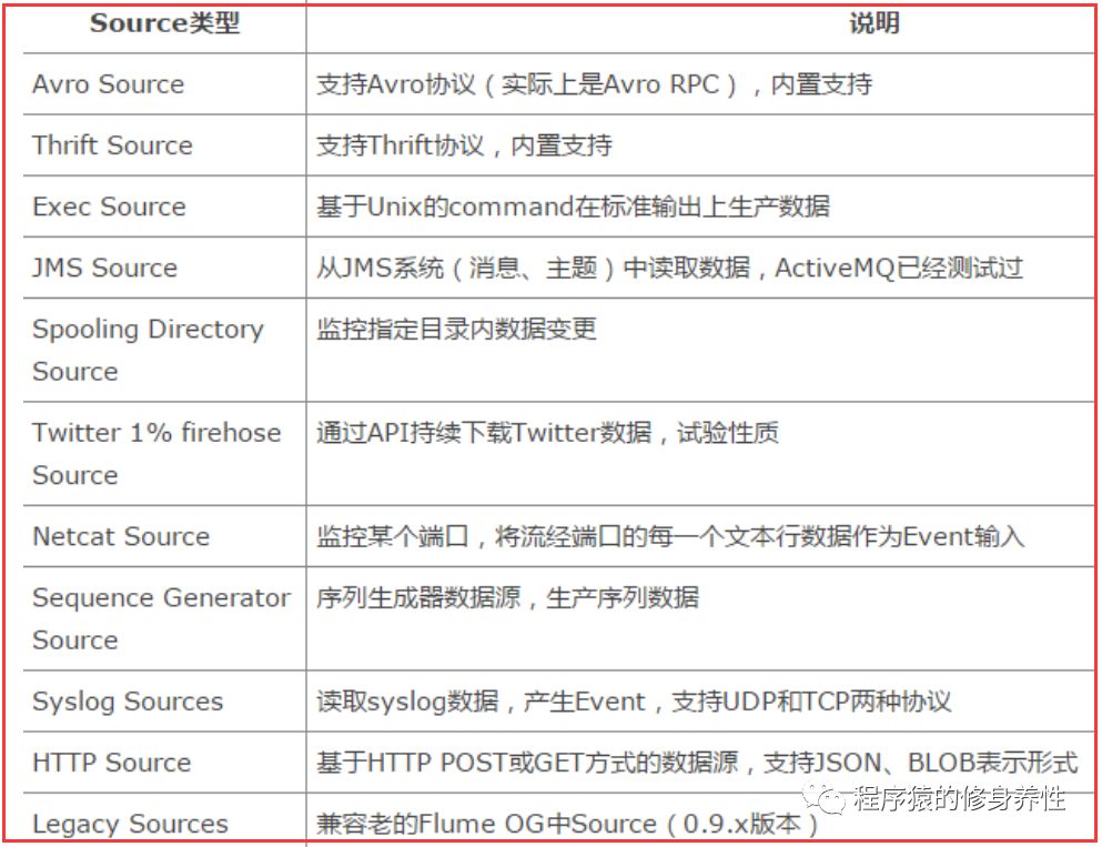 Flume主要支持的Source类型如下图所示: