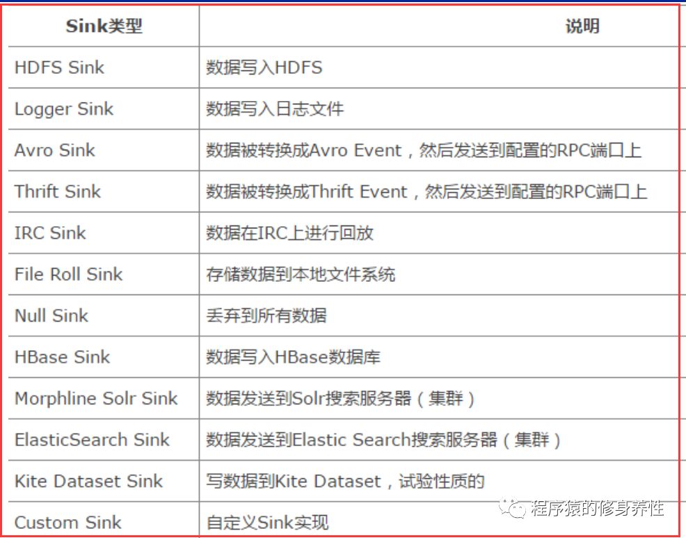 Flume主要支持的Sink类型如下图所示: