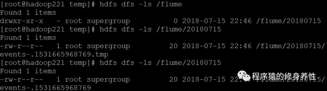 60秒钟之后,再查看HDFS对应目录,如下图所示: