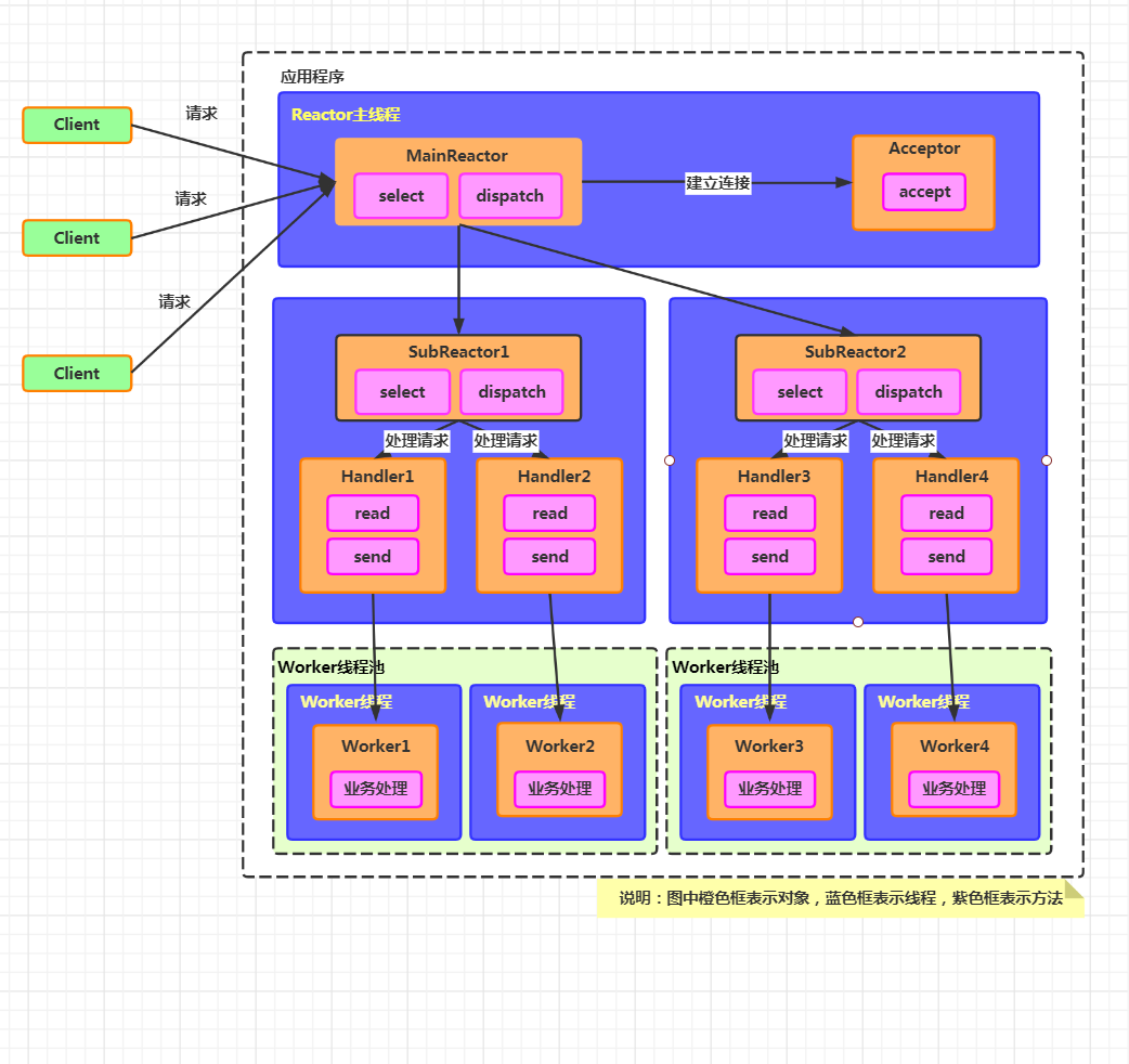 Reactor主线程MainReactor对象通过select监听连接事件,收到事件后,通过Acceptor处理连接事件