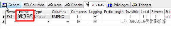 以EMP表为例: 先在EMP表中建立唯一索引,如图。