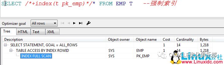 在一些特殊场景下,可能Oracle SQL不会自动走索引,这时候,如果对业务清晰熟悉,可以尝试使用强制索引,测试查询语句的性能。