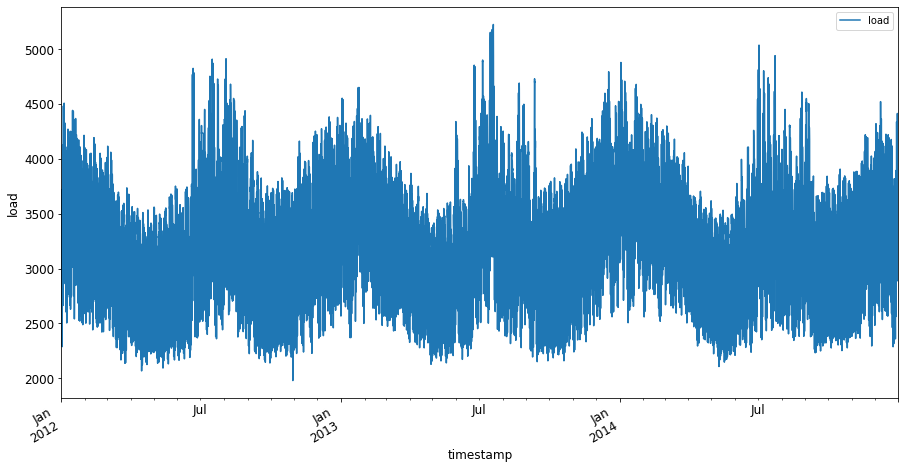 energy.plot(y='load', subplots=True, figsize=(15, 8), fontsize=12)