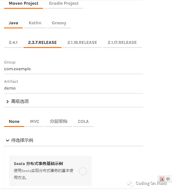1)、如果你所依赖的是spring boot starter 2.3.x则建议使用seata1.3.x。获取版本对应关系,请通过https://start.aliyun.com创建一个springboot项目,并添加nacos,nacos-config,seata依赖,并查看其版本依赖。