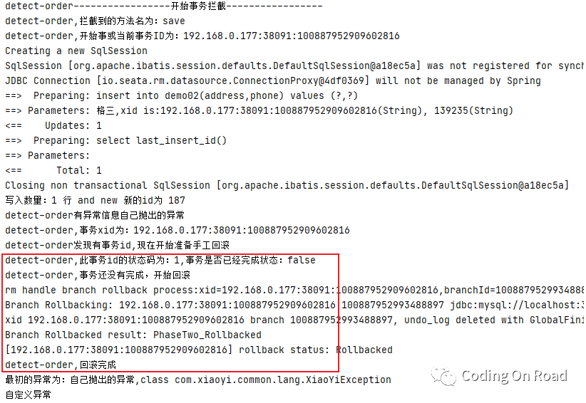 demo.setAddress(demo.getAddress()+",xid is:"+xid);