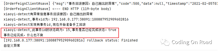log.info(applicationName + ",此事务id的状态码为:" + code + ",事务是否已经完成状态:" + finished);