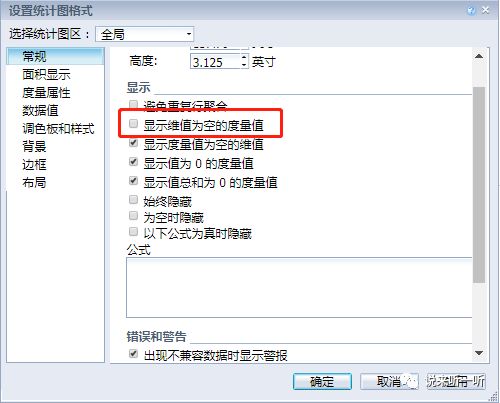 不想看维中的空值,可以使用过滤器或设置统计图格式等方法。但过滤器有可能会造成空值等问题,要留意。